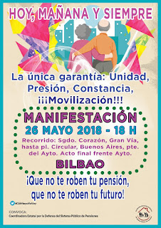 Es por todo ello que llaman a movilizarse este 26 de mayo por el futuro de las pensiones de sus hijas/os, nietas/os, así como rechazan frontalmente los planes de privatización del Sistema Público de Pensiones.