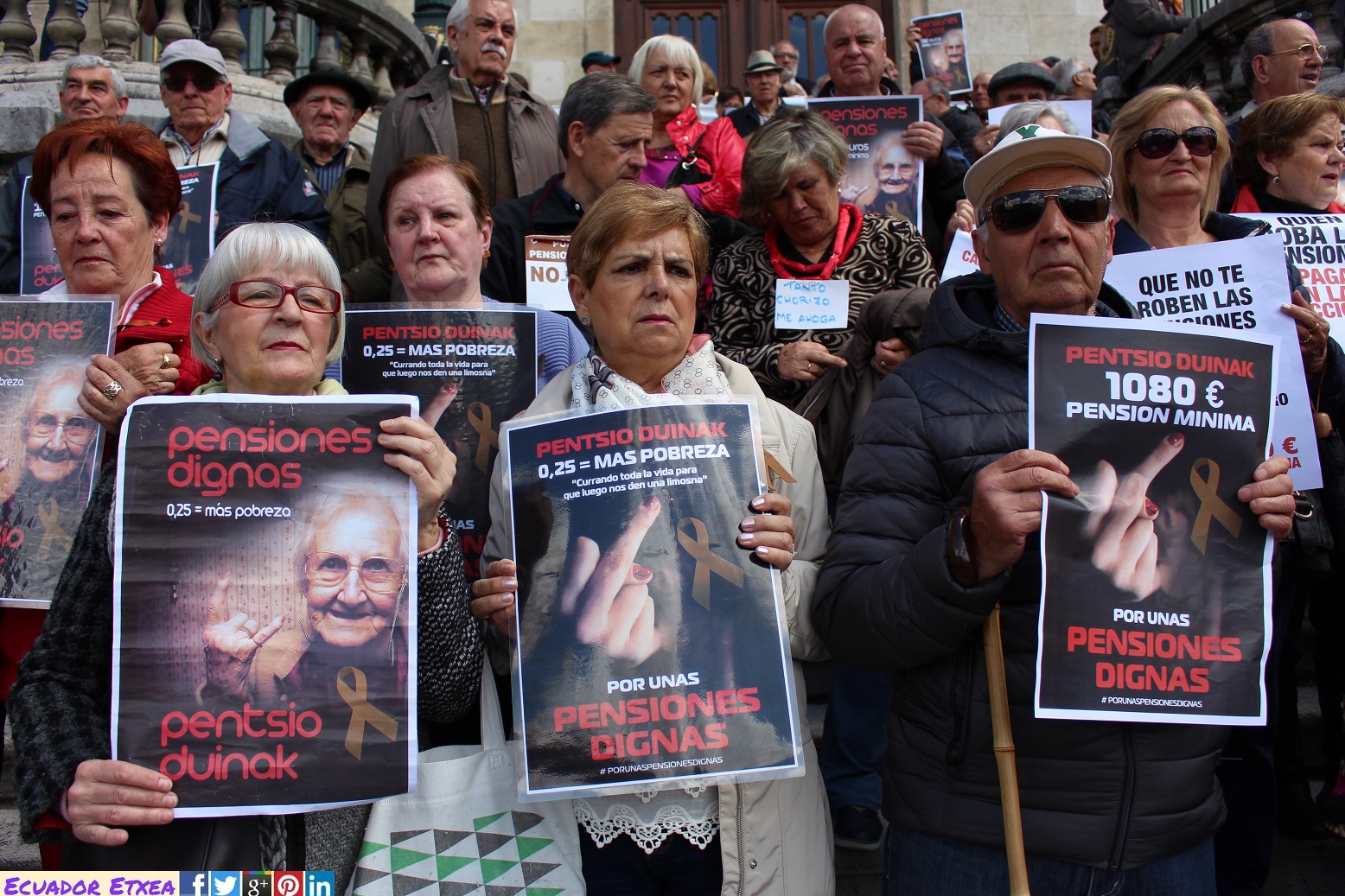 En cuanto al acuerdo alcanzado entre el PP y el PNV sobre la mejora de las pensiones, las plataformas de pensionistas lo consideran insuficiente por el contenido, por el tiempo de aplicación pero sobre todo porque no responden a su reivindicación fundamental: una pensión pública digna para todas las personas, que según la Carta Social Europea se debería situar en 1080€. Y que se acentúa más esta diferencia si comparamos las pensiones altas y bajas entre las que reciben mujeres y hombres.