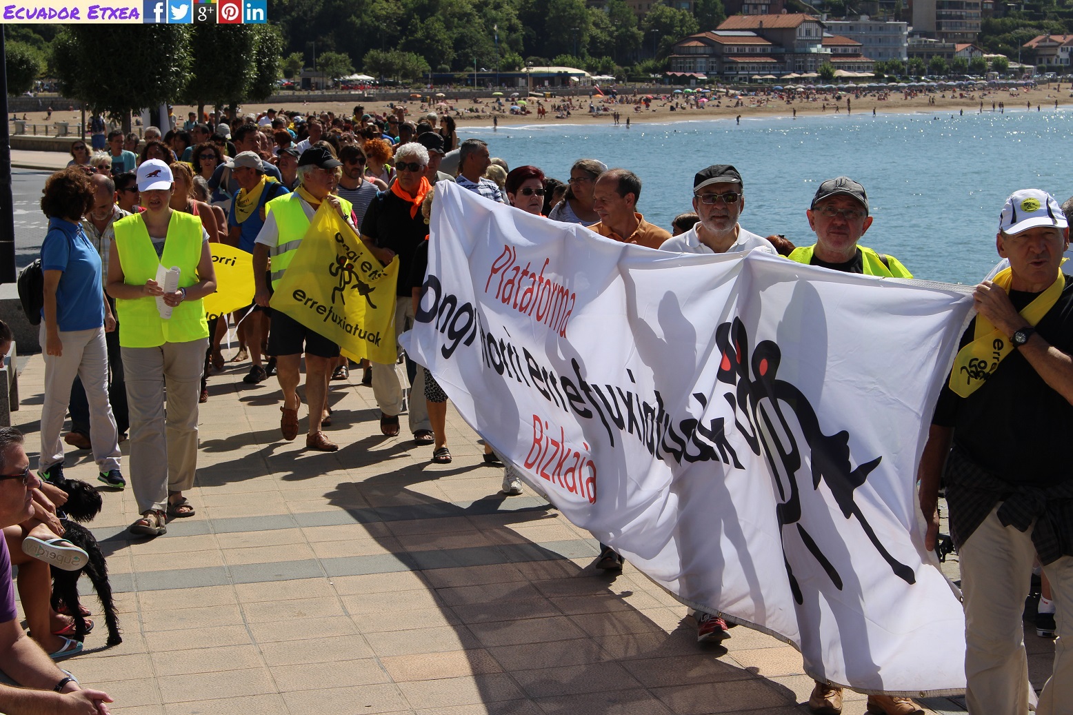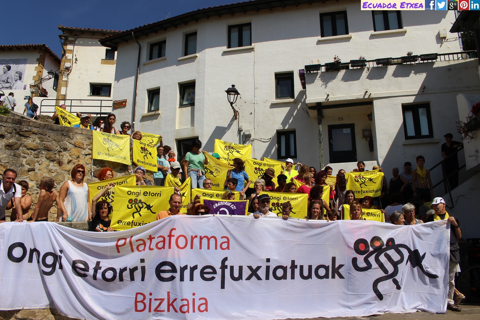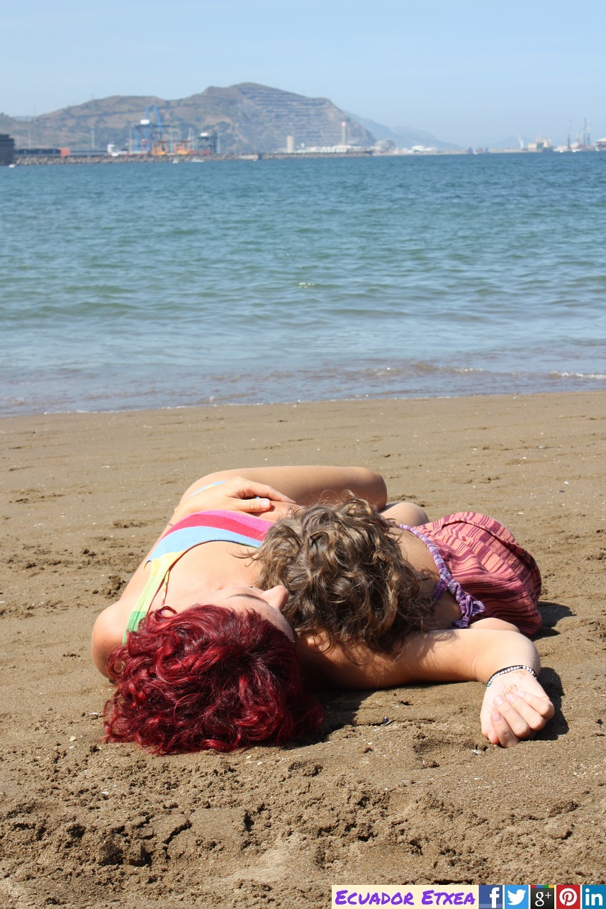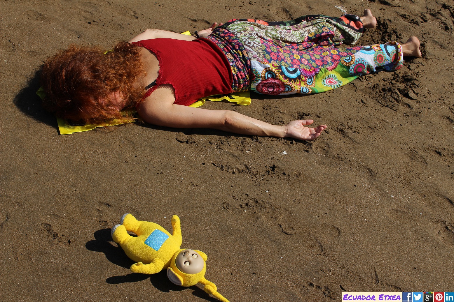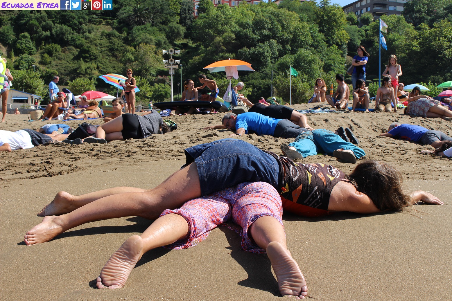 Este sábado 10 de septiembre a las 12:45 hemos realizado una performance en la playa de Ereaga, organizada desde la plataforma Ongi etorri Errefuxiatuak de Getxo y con el apoyo de la red Zurrumurrurik Ez/Antirumores de Getxo. Nos hemos juntado más de 100 personas.