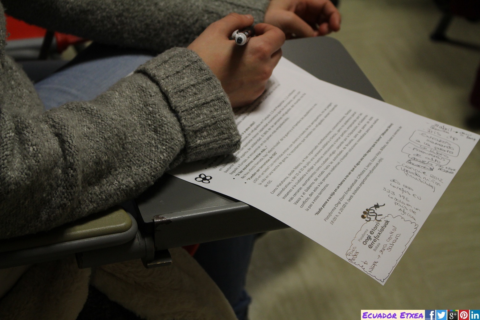 Este jueves 19 de diciembre en el Centro Cívico de Bidarte en Deusto, la Plataforma Ongi Etorri Errefuxiatuak BOST AUZO realizó una charla titulada “Responsabilidad Criminal de la Unión Europea con las personas refugiadas y migrantes” impartida por Víctor S. Pozas, integrante de la plataforma y profesor de la UPV-EHU. También se aprovechó la ocasión para trasladar información e invitar a participar/colaborar en la acción que se organizará entorno al 80º Aniversario del Bombardeo de Gernika.
