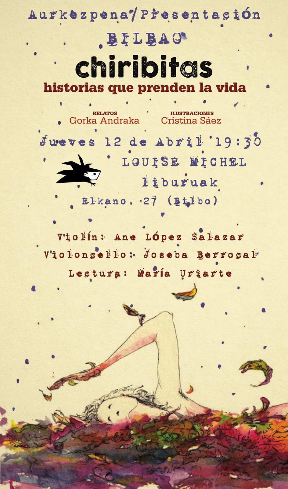 La librería Louis Michel de Bilbao se ha quedado sin sitio con la cantidad de personas que se han acercado para la presentación del libro “Chiribitas: Historias que prenden la vida”, una “colección prosépica que quiere abrazar la ficción y la imaginación literaria, con el mundo poético de la ilustración y la necesidad del compromiso y la crítica social, entendiendo que todo ello son herramientas que nos damos para encontrar nuevos caminos y provocar una reflexión profunda sobre los cambios que propone, entre otros, el ecologismo social”.