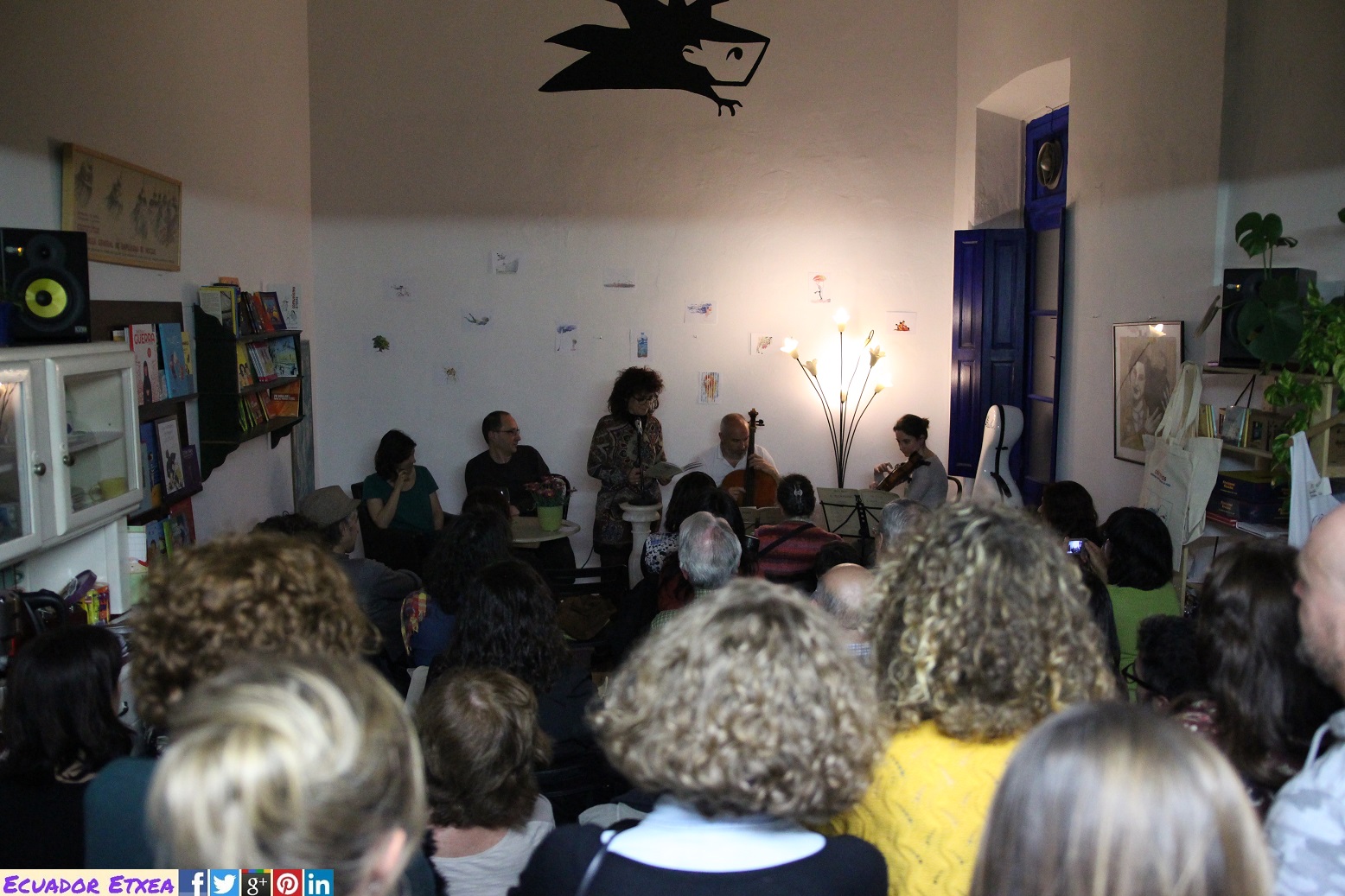 La presentación ha contado con la presencia de Gorka Andraka, autor de los relatos, y Kristina Sáez, ilustradora, además de la lectura de los relatos a cargo de María Uriarte y todo ello acompañado de Ane López Salazar al violín y de Joseba Berrocal al violoncello.