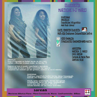 Fotógrafa documentalista en formación permanente y activista feminista, perteneciente a la Asamblea de Mujeres de Bizkaia. Desde 2003 hasta 2015, he trabajado en representación de la B.E.A. junto a más compañeras en la Plataforma de la Marcha Mundial de las Mujeres de Euskal Herria, coordinando y participando en las 3 últimas Acciones Internacionales (2005 2010-2015).