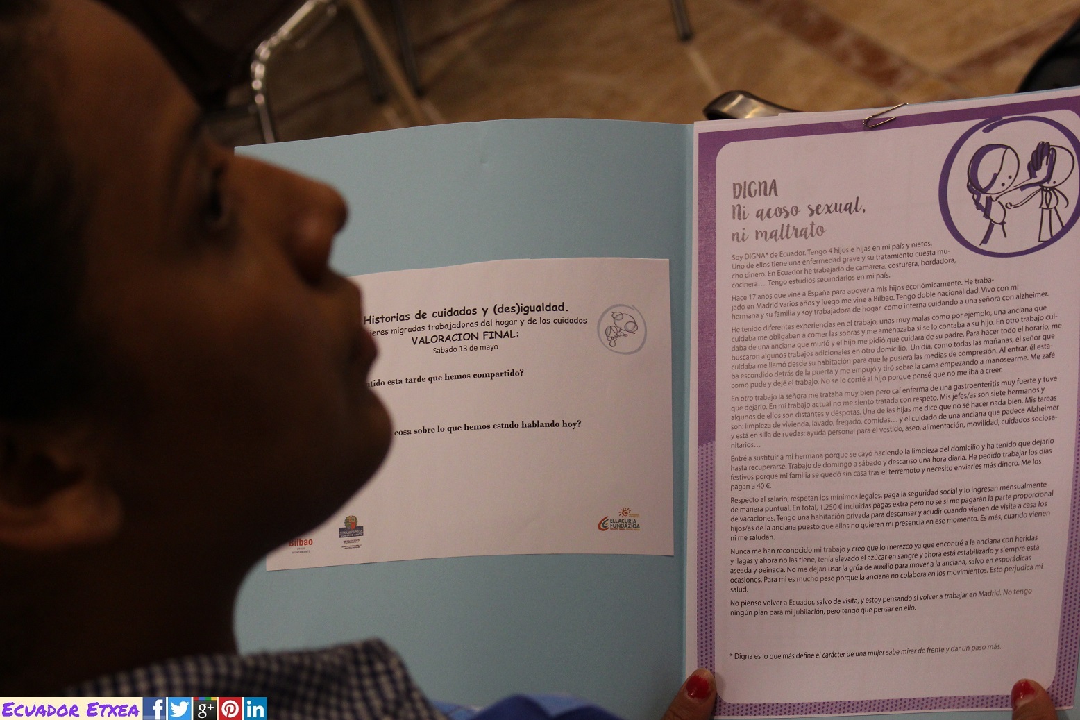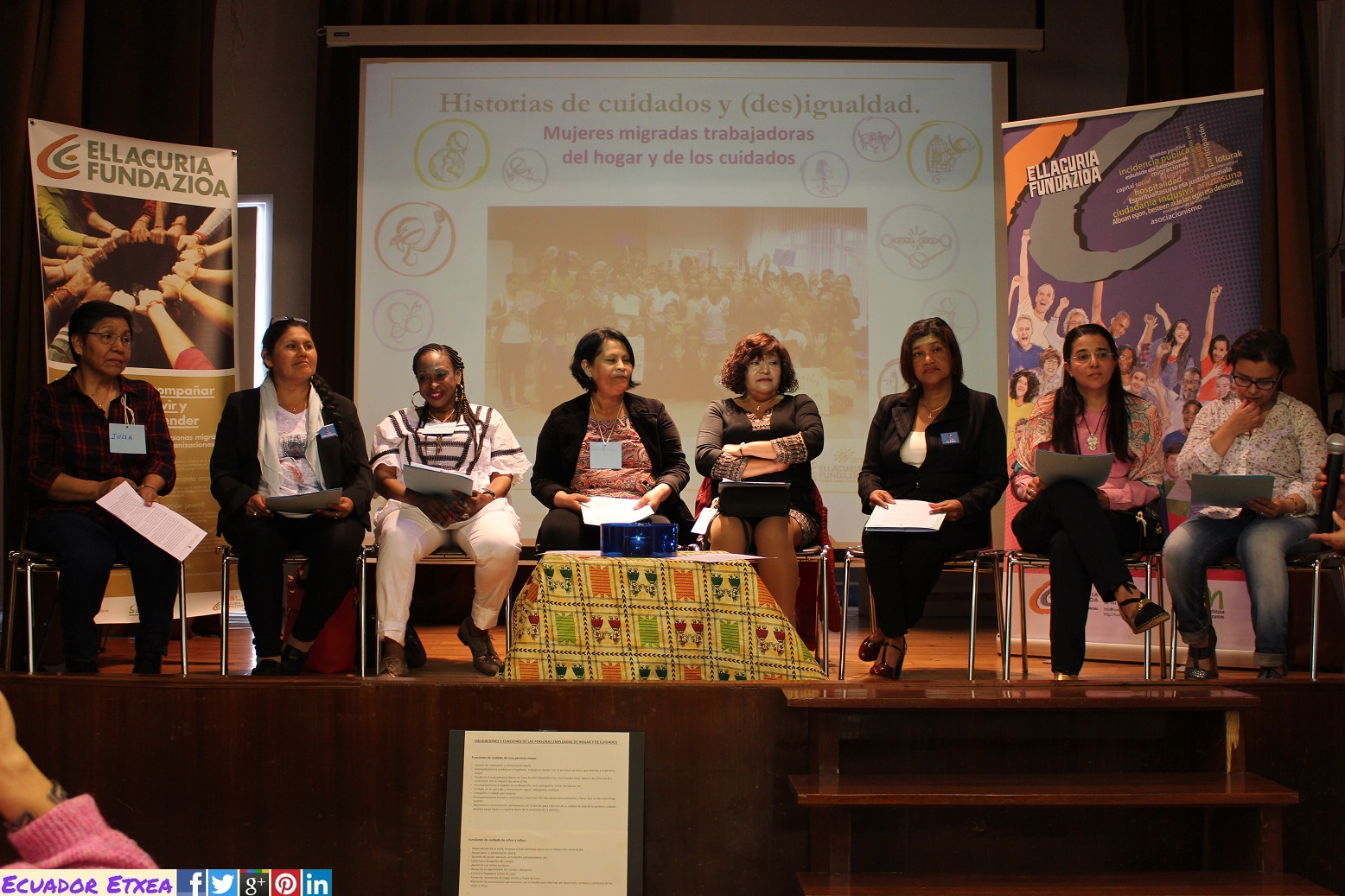 Este sábado 13 de mayo, en el centro Mª. Inmaculada (Bilbao), la Fundación Ignacio Ellacuría en colaboración con el Grupo de Servicios Sociales Integrados, S.Coop. Centro Social Religiosas de Mª.Inmaculada, el Centro Asesor de la Mujer “Argitan”, el Colectivo “Brujas y Diversas”, Mujeres del Mundo Babel y la Facultad de Psicología y Educación de la Universidad de Deusto, llevaron a cabo el taller y la presentación de la publicación “Historias de Cuidados y (des)igualdad” sobre 13 mujeres migradas trabajadoras del hogar y de los cuidados que comparten sus experiencias y dialogan entre ellas y trabajadoras autóctonas, familias empleadoras, técnicas-os de intermediación laboral – inmigración – igualdad, movimiento feminista etc. Juntas compartieron miradas sobre: