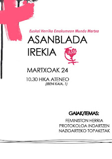 Son varios los temas que se trabajaron en la asamblea pero el principal fue la formación de grupos de trabajo para FEMINISTON HERRIA. El orden del día fue: