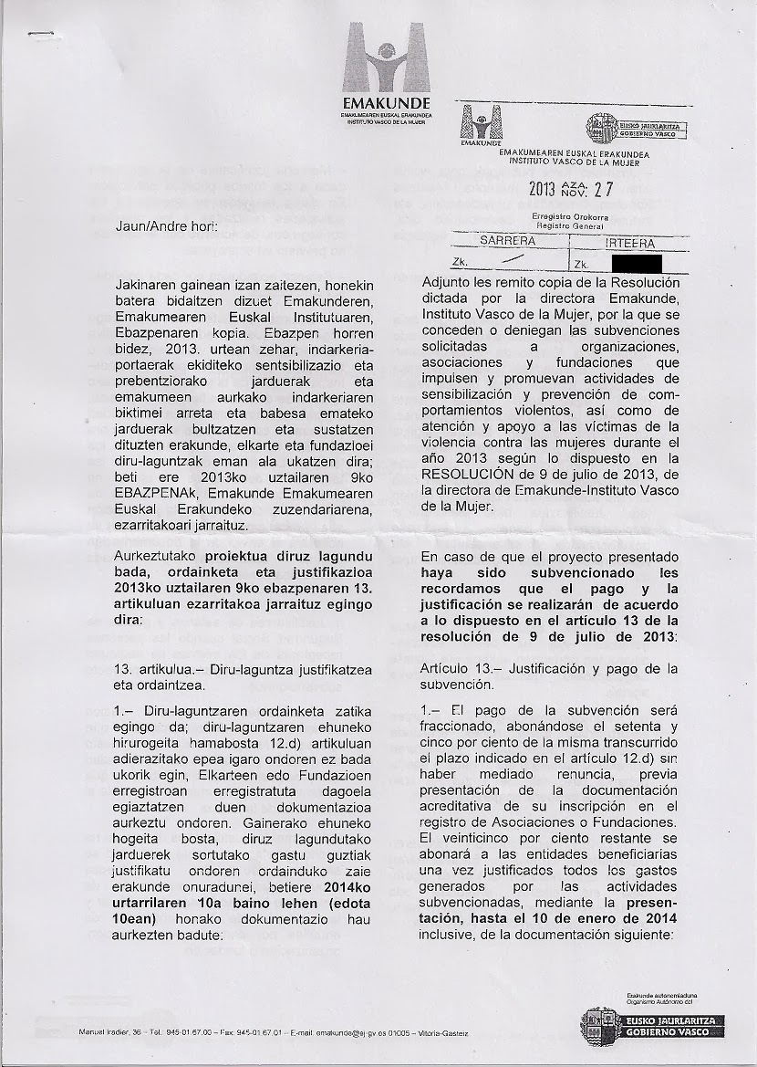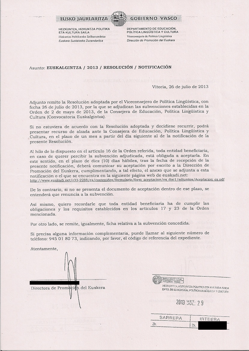 Nombre del proyecto: Integración Social a través del Euskera para Personas Inmigrantes, Euskalgintza.