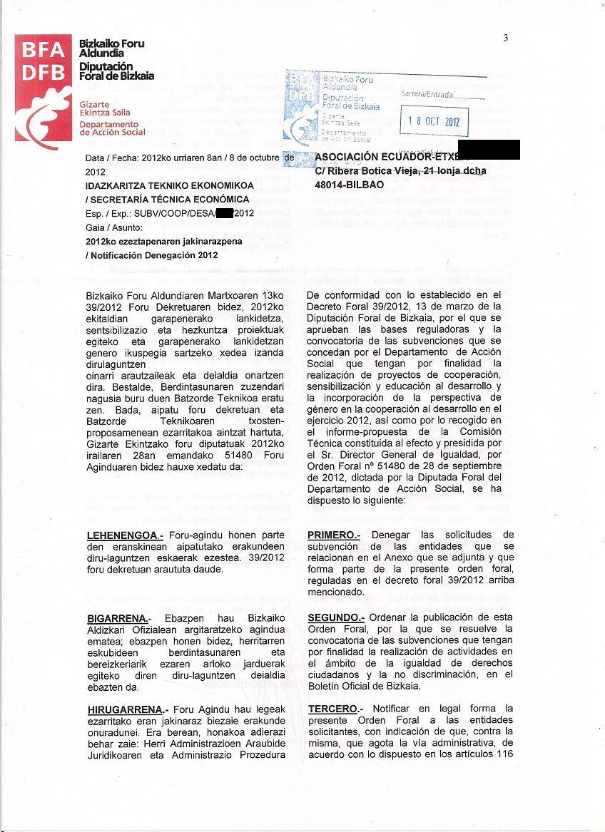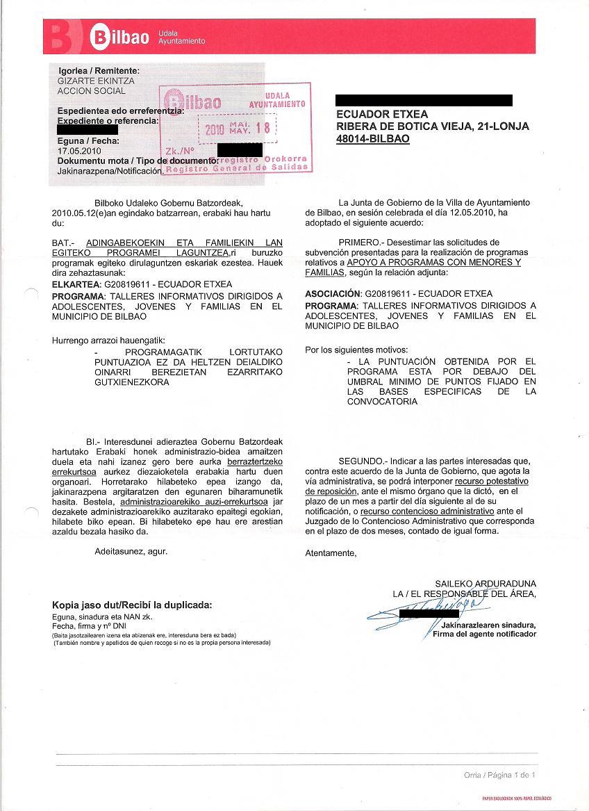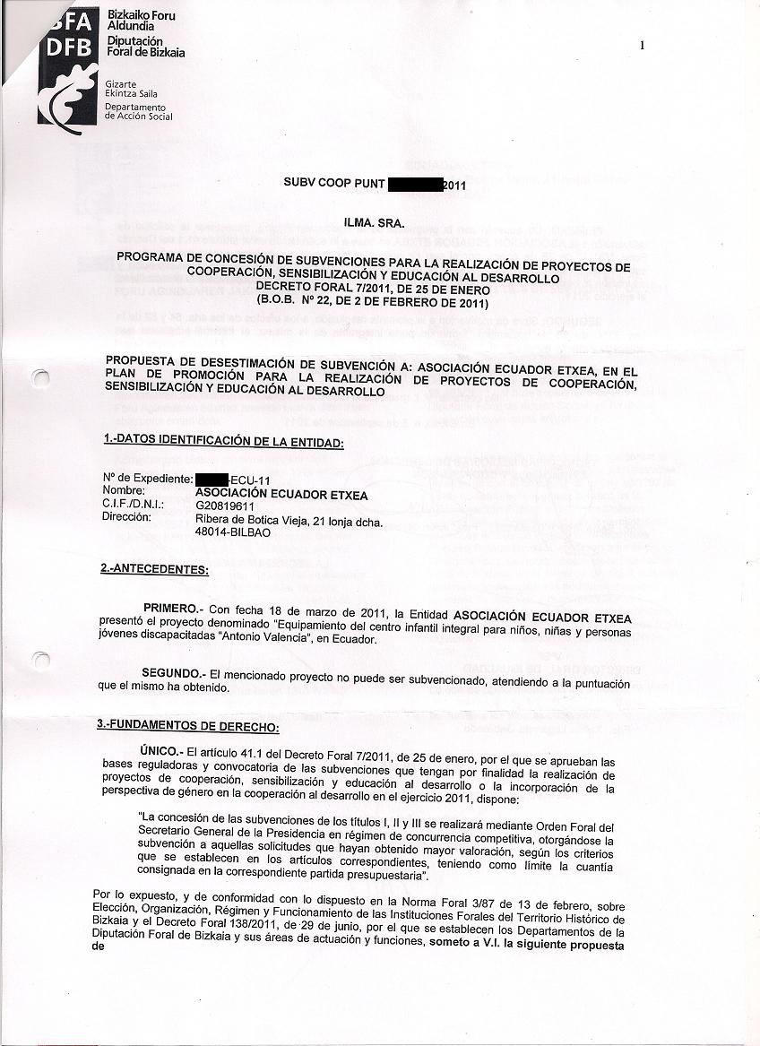 Proyecto: Seguimiento del procedimiento jurídico en la tramitación de los procesos judiciales en los 14 juzgados de la Familia, Mujer, Niñez y Adolescencia, en el distrito metropolitano de Quito orientado a comprobar la celeridad y cumplimiento del debido proceso dentro del marco de modernización de la justicia ecuatoriana. Subvenciones Cooperación Internacional y/o de Educación para el Desarrollo. Ilustre Colegio de Abogados del Señorío de Vizcaya.