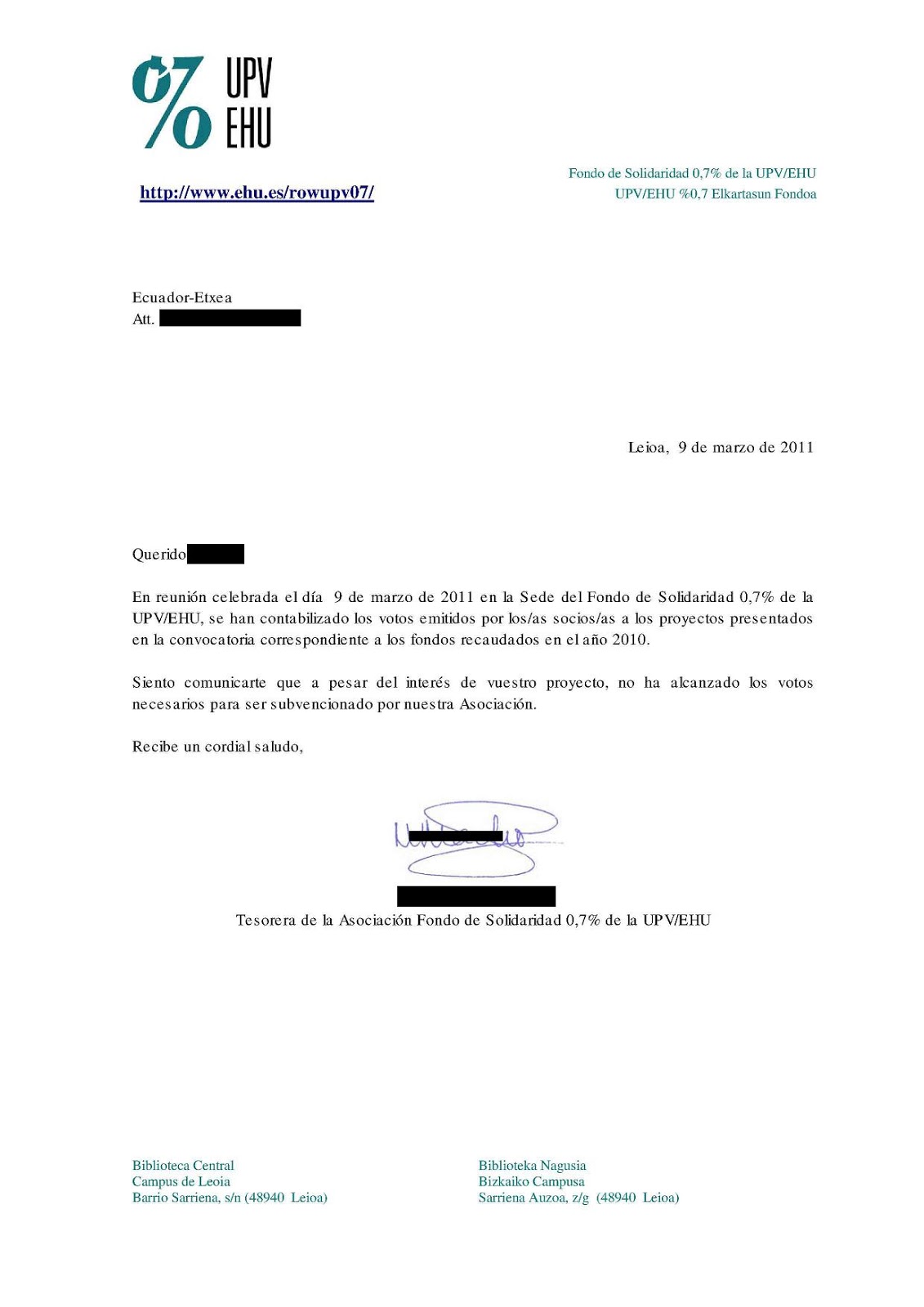 Proyecto: Fortalecimiento de la Identidad Cultural de la Confederación Kayambi. Solicitud para la realización de Proyectos de Cooperación al Desarrollo en los países en vías de Desarrollo. Fondo de Solidaridad 0,7% de la UPV/EHU.