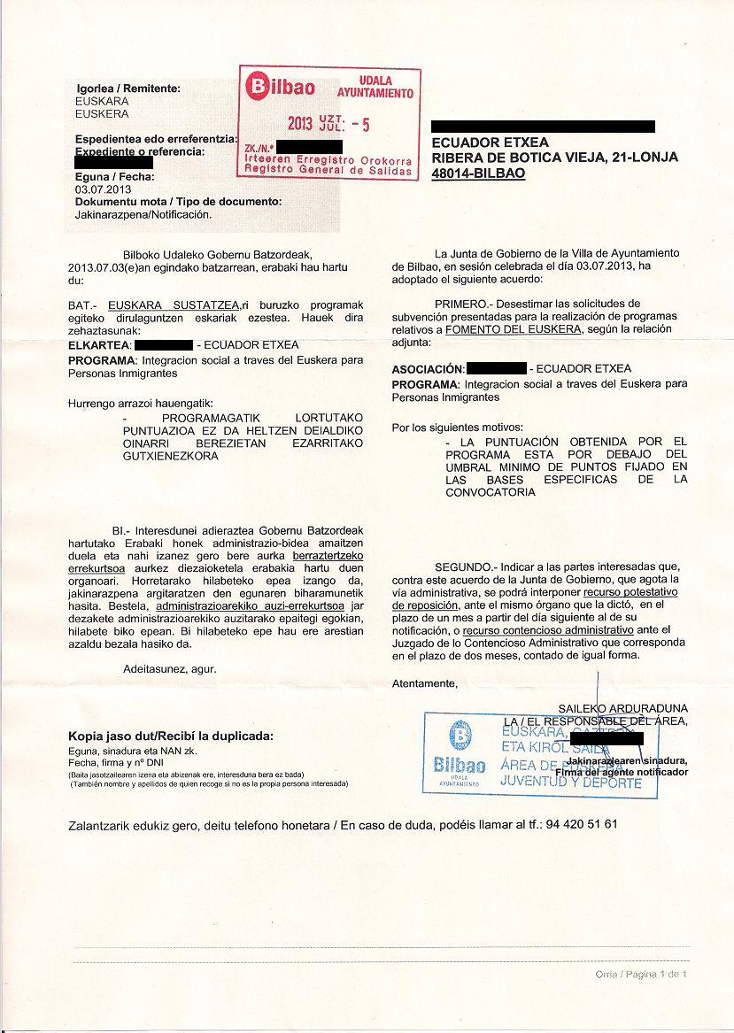 Nombre del Proyecto: Integración Social a través del Euskera para Personas Inmigrantes, Fomento del Euskera, Ayuntamiento de Bilbao