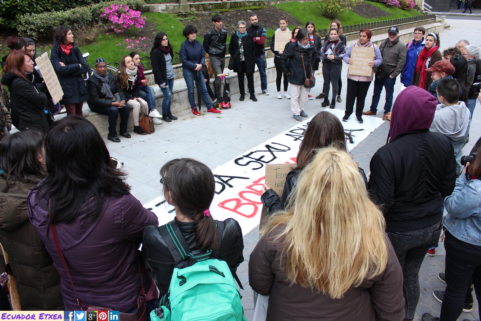 En esta ocasión, la asamblea se ha realizado en los Jardines de Albia, frente a los juzgados y se ha decidido que el nombre del grupo convocante de estas movilizaciones se llame “Alerta Feminista Bizkaia”. Estas asambleas de carácter mixto se seguirán llevando a cabo semanalmente hasta que se logra articular una respuesta conjunta y coordinada con el resto de colectivos del movimiento feminista.