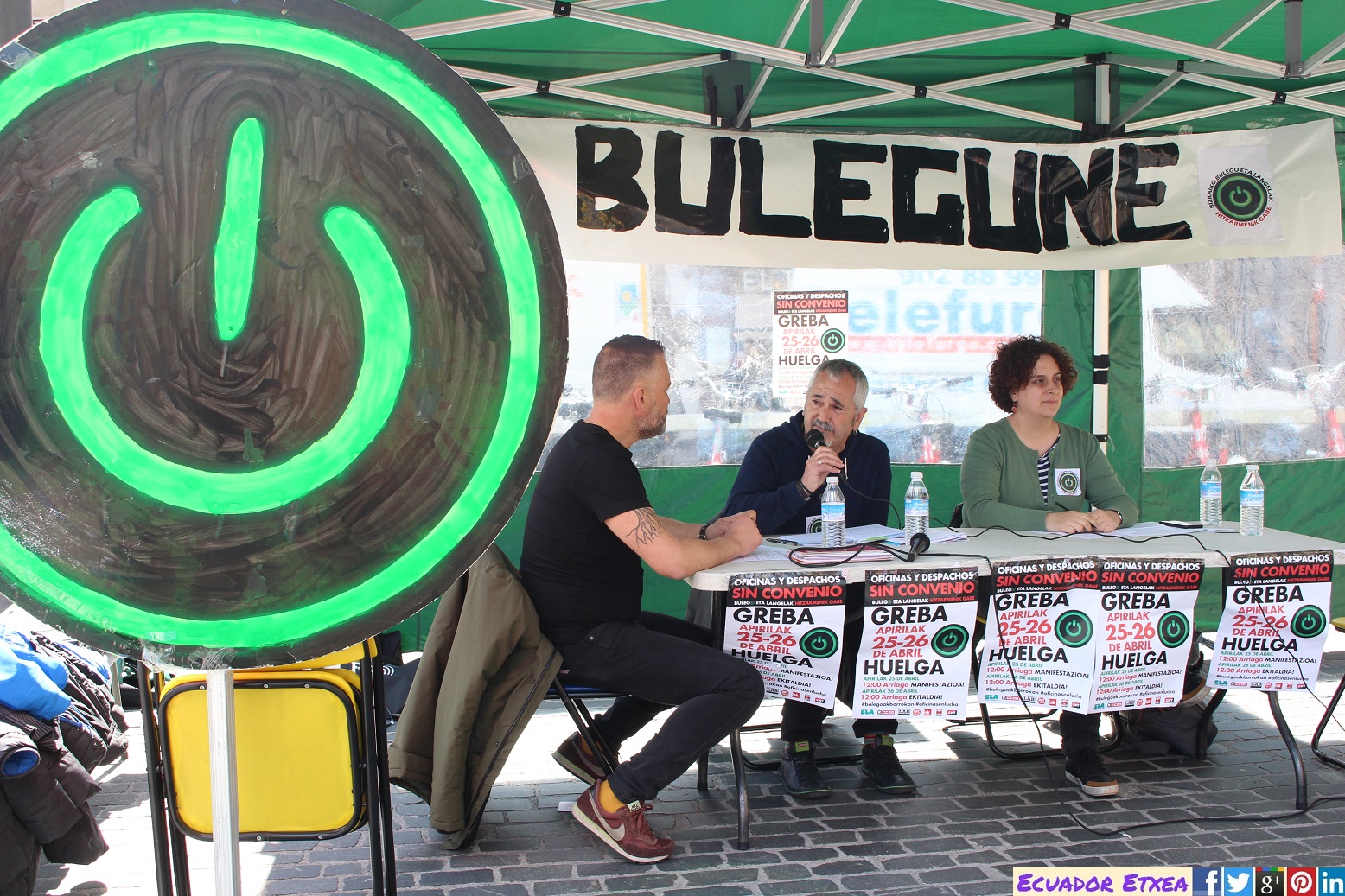 “Es un punto de encuentro y debate público, entre todos los y las trabajadoras de bulegoak podamos reunirnos, debatir, coger información y participar de nuestro convenio y sobre todo, hacer visible nuestra lucha“.