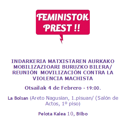 El lema de la movilización es Feministok prest! vuestras agresiones tendrán respuestas.