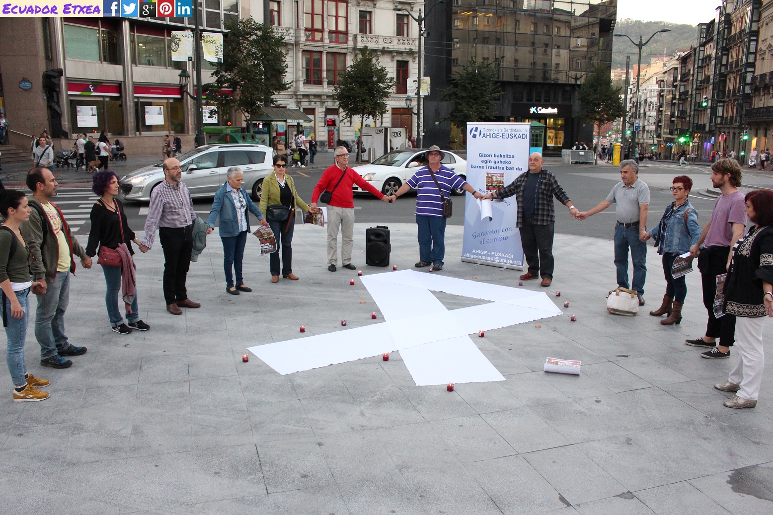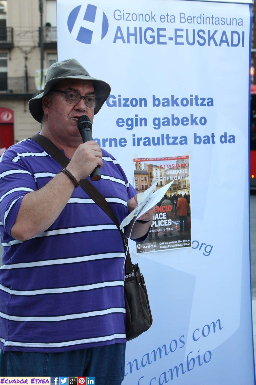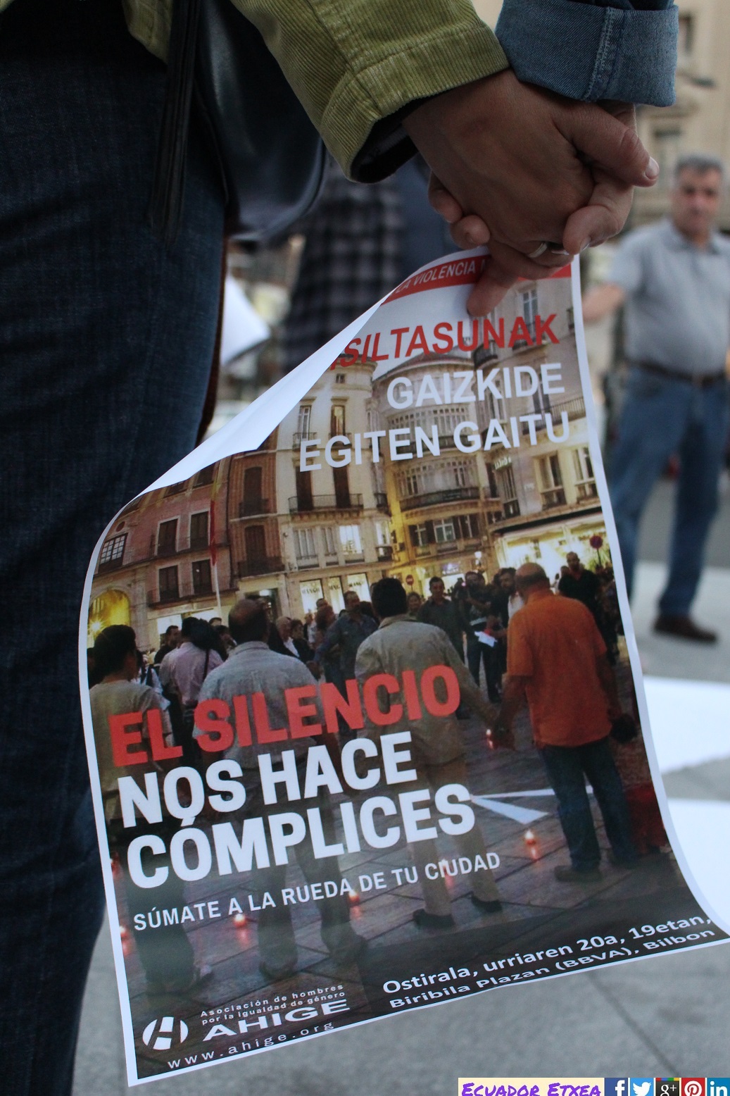 La Asociación de Hombres por la Igualdad de Género (AHIGE-Euskadi) se ha concentrado la tarde de este viernes 20 de octubre en la plaza Biribila de Bilbao para visibilizar y concienciar de la responsabilidad que tienen los varones para acabar con la violencia machista.