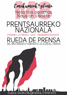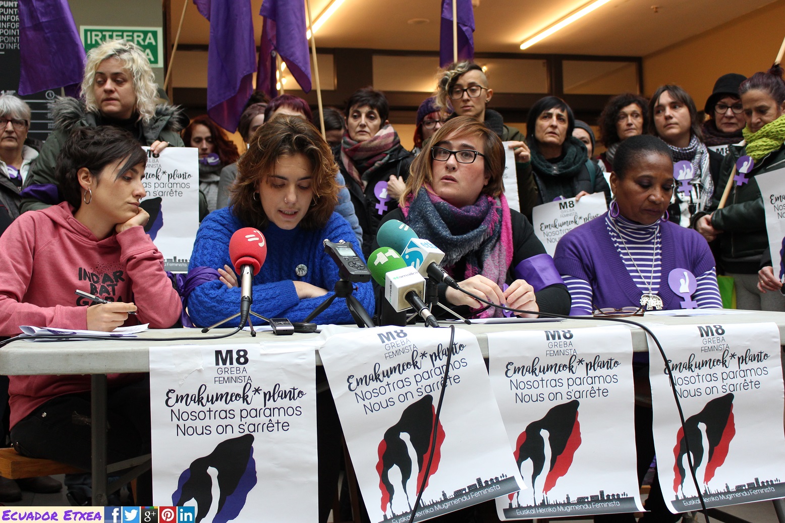 Este 8 de marzo, el movimiento feminista de Euskal Herria queremos unirnos al grito de NOSOTRAS PARAMOS, para denunciar este sistema capitalista, racista y heteropatriarcal que nos somete y aplasta. Este día será un punto de partido en un camino mucho más largo, en el que iremos tejiendo nuevas alianzas, encontrándonos y reconociéndonos, repensando nuestras luchas, construyendo nuevas resistencias, desconectándonos de un mundo que nos deshecha, para generar una alternativa feminista.