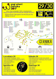 – El sábado 29 las marchas de apoyo a las personas refugiadas, que partirán de varios puntos de Euskal Herria y llegarán en columnas hasta Gernika, donde celebraremos un emotivo acto en memoria de las «Guernicas» de ayer y de hoy. Está previsto que acudan diferentes referentes mundiales de los derechos humanos y la paz.