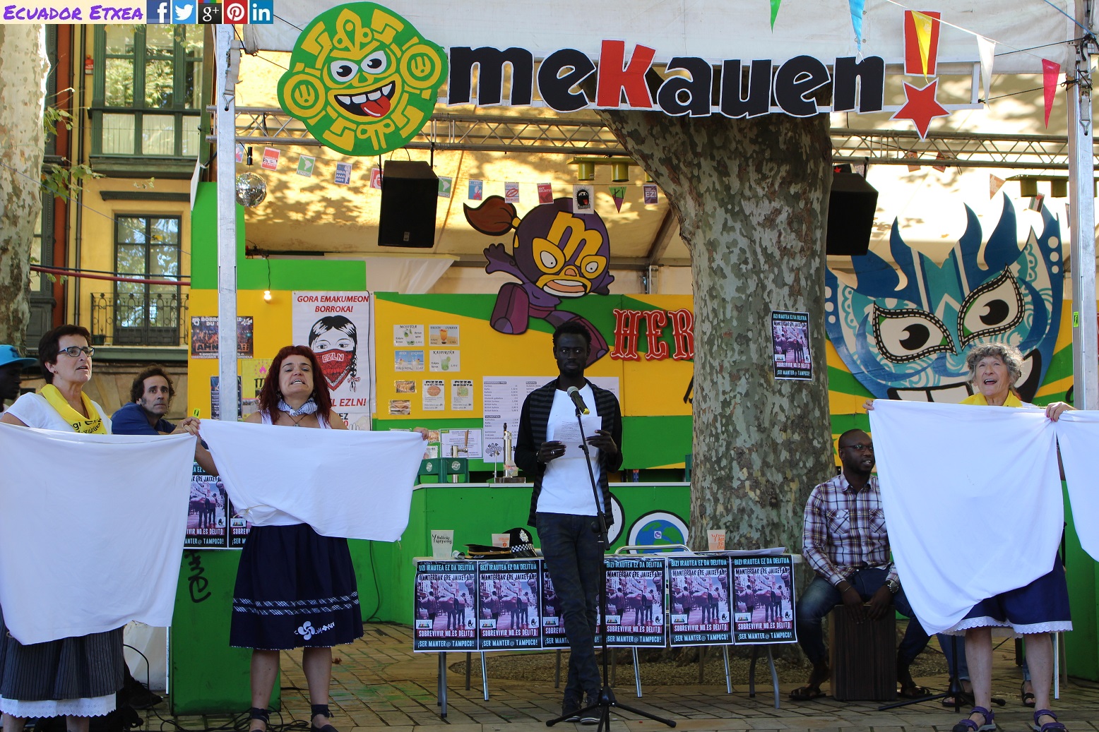 Al igual que el año pasado, el dispositivo policial preventivamente dispuesto por el Ayuntamiento de Bilbao para Aste Nagusia 2016 continúa en la línea criminalizadora y represiva del top manta y de los/as vendedoras ambulantes. Ni la venta ambulante, ni el top manta representan una amenaza a la “seguridad”. Ni los manteros ni los/as vendedores/as ambulantes son sujetos peligrosos – por mucho que la retórica criminalizadora de la policía municipal, el poder político y mediático – se esfuercen por describirlos de esa manera. En palabras de SOS Racismo- Bizkaiko SOS Arrazakeria » La venta ambulante forma parte de nuestra cultura y de nuestra historia Vendedores y vendedoras ambulantes, tanto autóctonas como foráneas, han recorrido durante décadas nuestros pueblos y ciudades y han contribuido al desarrollo económico y social de nuestra sociedad, tal y como muestra su abundante presencia en el folclore».