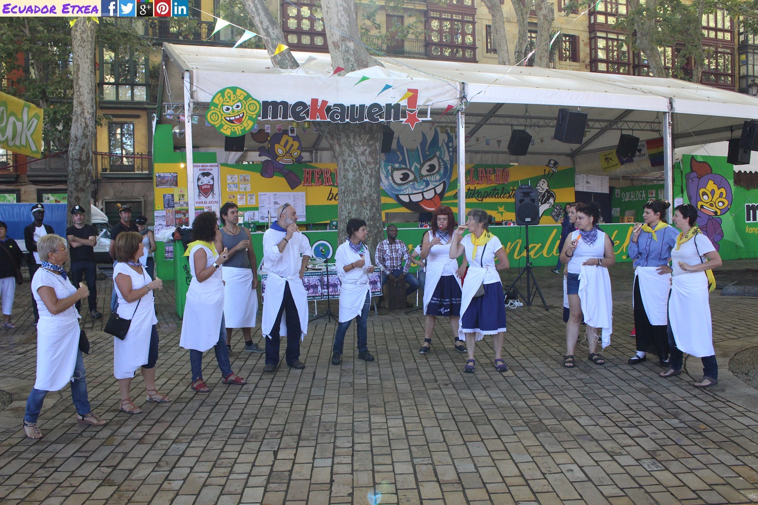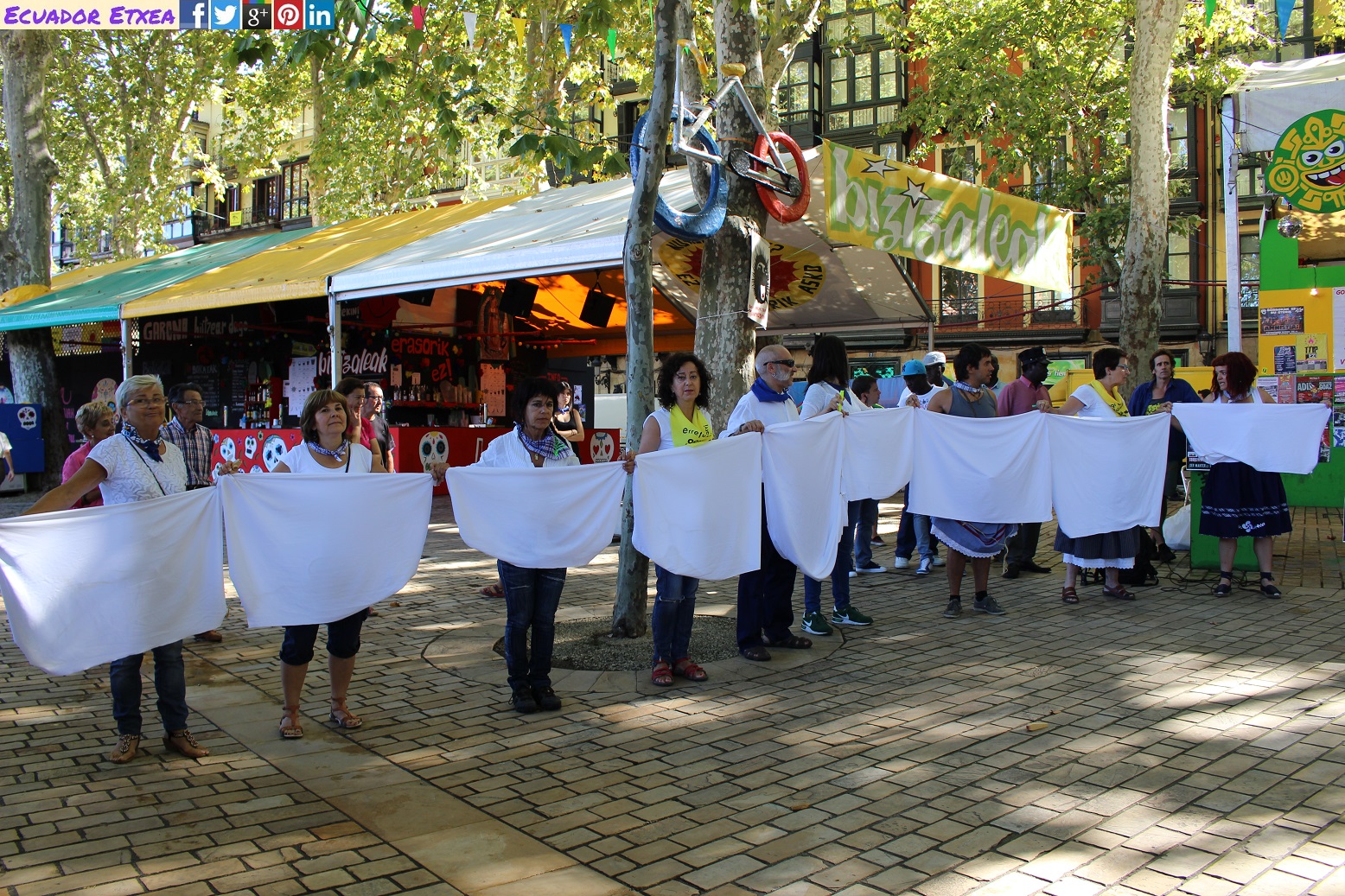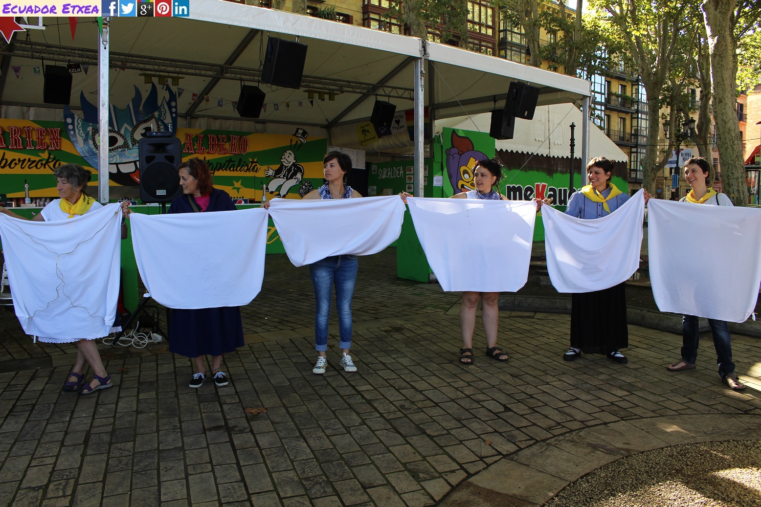 Bilbao, 22 de agosto de 2016.- Hoy hace un año, la policía municipal de Bilbao entró en el recinto festivo del Arenal de forma violenta, arrancando las mantas y pisando el género de las vendedoras ambulantes que se encontraban allí. Cuando los vecinos y vecinas de Bilbao que paseaban por la zona y disfrutaban de la fiesta protestaron por la actitud violenta de los agentes – demostrando su solidaridad con los/as trabajadoras/es ambulantes – los policías arremetieron contra ellos y ellas con empujones y malas formas, reteniendo y zarandeando a tres señoras. Estas tres mujeres fueron identificadas y una de ellas tiene un juicio pendiente por haber expresado públicamente su indignación y su solidaridad.