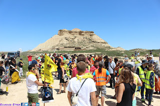 La primera parada de la Caravana es en el polígono de tiro de Bardenas (Navarra). Allí nos encontraremos los 4 autobuses de la Plataforma Ongi Etorri Errefuxiatuak que salimos de Euskal Herria.