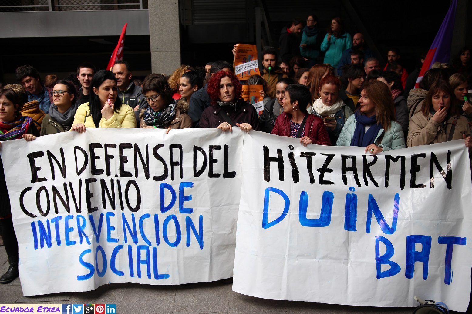 Los sindicatos ESK, LAB, CCOO y UGT, con representación mayoritaria en el sector, han llamado a los y las trabajadoras del ámbito de la intervención Social de Bizkaia a realizar la cuarta movilización en defensa del convenio colectivo para exigir una mejora sustancial de las condiciones laborales. En esta ocasión, han convocado un paro de 3 horas de paro por turno de trabajo, llamando a parar de 10 a 13 horas, para las personas que trabajen en horario de mañana y de 15 a 18 horas para las personas que trabajan de tarde. Los y las trabajadoras con horario partido, podrán secundar el paro en una de las dos franjas horarias.