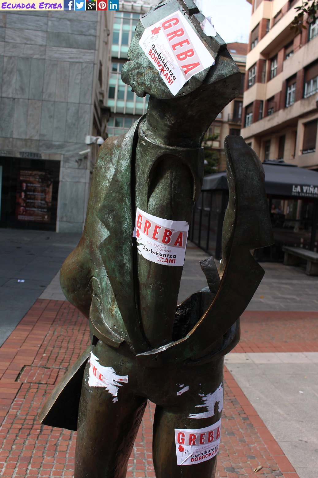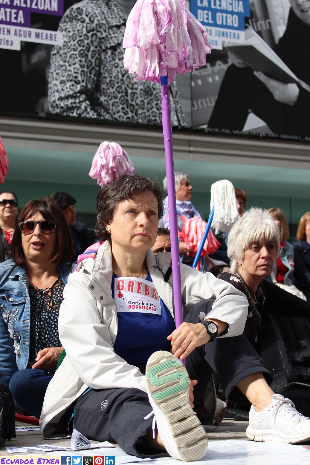 Con silbatos y fregonas en mano, las trabajadoras y trabajadores de Garbialdi que limpian los centros de la Diputación Foral de Bizkaia, afrontan la segunda jornada de huelga de tres días (28, 29 y 30 de mayo) realizando una pitada y sentada frente al Palacio y a la Biblioteca Foral de la Diputación de Bizkaia en Bilbao, con el apoyo de los sindicatos ELA, LAB, UGT, ESK y CCOO, para denunciar que llevan desde el 2010 con los salarios congelados y un total de 6 años tratando de negociar su Convenio.