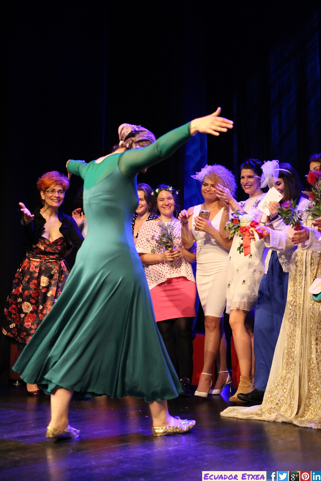 Catorce mujeres han celebrado este viernes 8 de junio en el Bilborock (Bilbao) una boda consigo mismas y se han comprometido a cuidarse, amarse y respetarse, todos los días de su vida. La ceremonia que ha sido oficiada por Carmen Muñoz, concejala del Ayuntamiento de Bilbao, ha salido primero por kalejira recorriendo las calles de Bilbao la Vieja repartiendo naranjas entre los y las transeúntes contando que “no somos la media naranja de nadie, somos naranjas completas”. Para más tarde, dar inicio a la ceremonia dentro de Bilborock acompañadas por la magnífica voz de la soprano Miren de Miguel, mientras una por una, las novias han leído sus votos a cerca de a lo que se comprometen y a qué renuncian en esta nueva etapa de su nueva vida junto a ellas mismas.