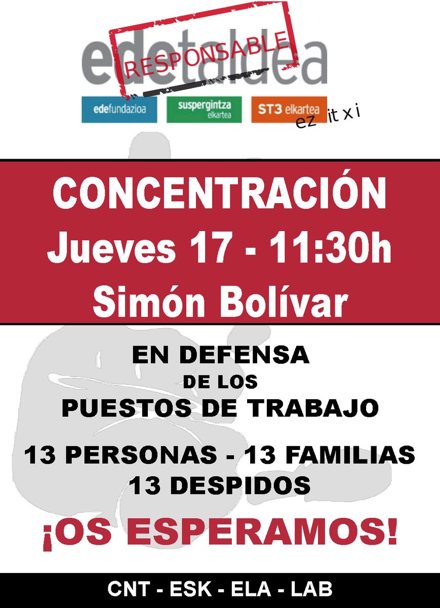 Y el segundo mensaje está dirigido a quienes estáis leyendo esto, y es: “sólo os queremos pedir una cosa y es que tengáis presente que hemos sido, somos y debiéramos seguir siendo compañeras. Os pedimos que por un momento os pongáis en nuestra piel, seáis conscientes del sufrimiento al que nos vemos sometidas y nos acompañéis en este largo y doloroso proceso y ser una vez más las y los trabajadores de EDE Taldea las que defiendan con sus acciones y actitudes un proyecto realmente centrado en las personas y que busca la transformación social actuéis en consecuencia”.