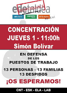 Los sindicatos CNT, ESK, ELA y LAB nos han mostrado su apoyo en estos momentos tan difíciles, con su acompañamiento durante la huelga y durante las movilizaciones que estamos realizando.