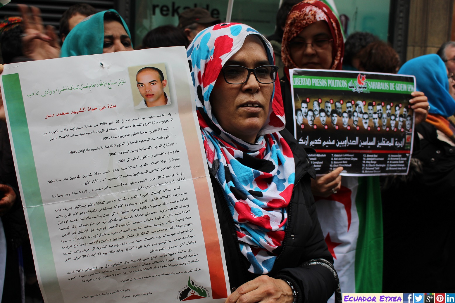 Es por todo esto que los sindicatos ESK, STEILAS, LAB eta ELA junto con las Asociaciones vascas de solidaridad con el pueblo Saharaui y las asociaciones de inmigrantes Saharauis en Euskal Herria hemos hecho un llamamiento a una concentración frente al consulado de Marruecos en Bilbao (calle Alameda Recalde 27 Bilbao)