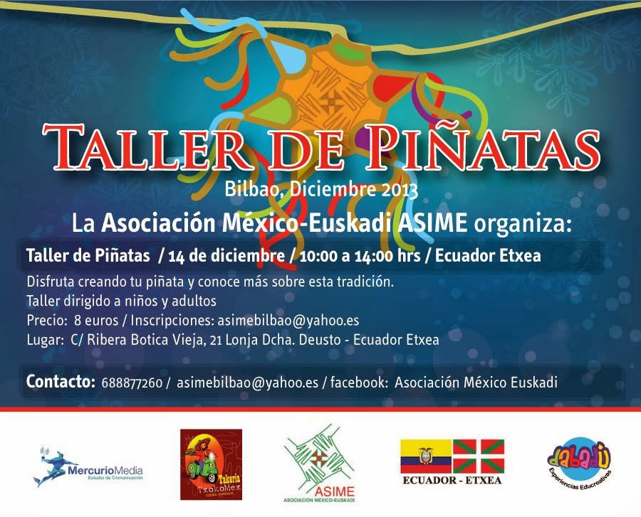 Para l@s mexican@s, la navidad no sería lo mismo si las tradicionales piñatas: diversión para chicos y grandes. Asociación México-Euskadi (ASIME) te invita a participar en su ya tradicional taller de piñatas navideño. Disfruta creando tu piñata y conoce más de ésta tradición.