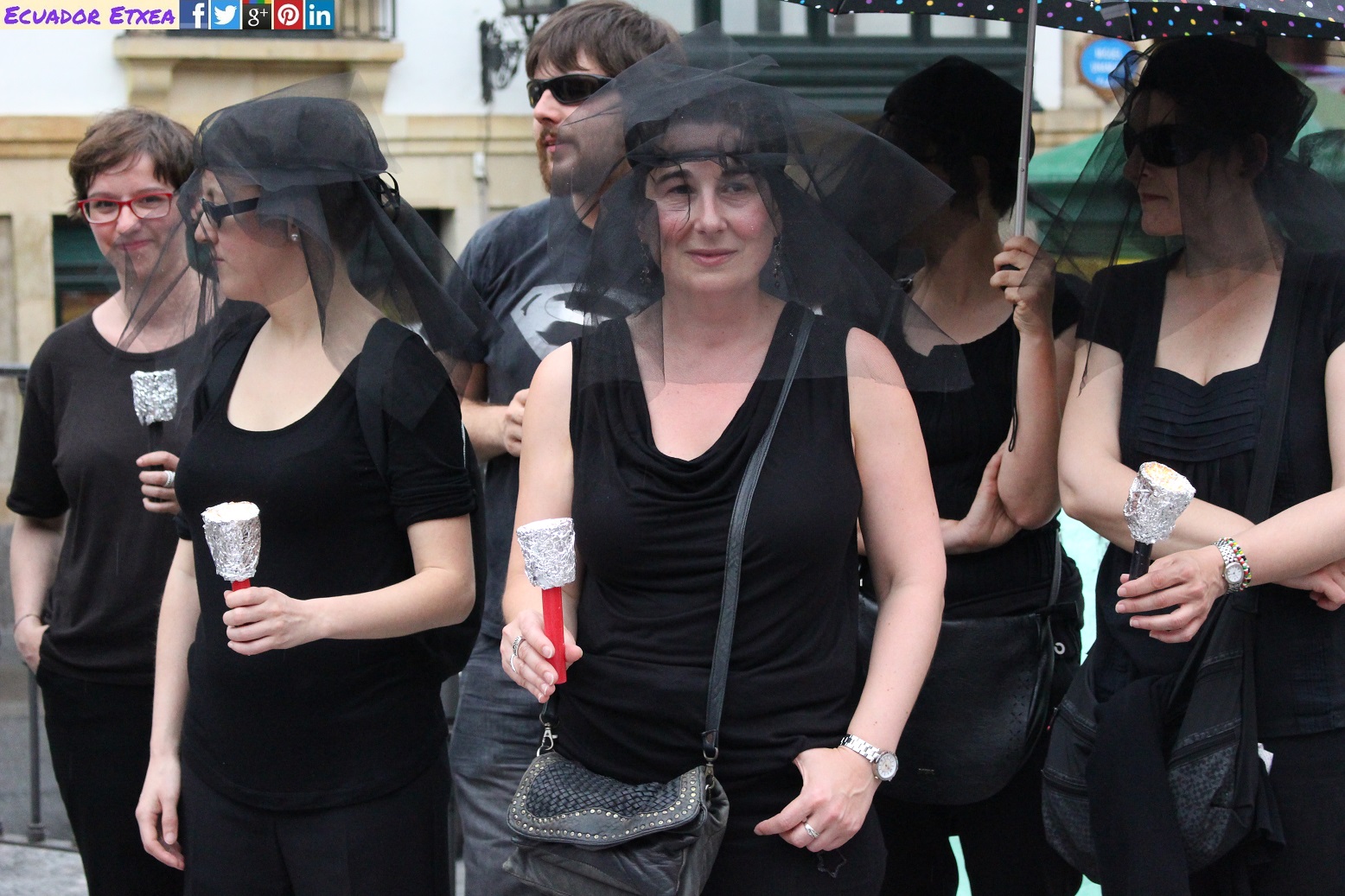Un cortejo fúnebre ha recorrido las calles de Bilbao hasta llegar a la céntrica plaza de Unamuno en el Casco Viejo, para escenificar «el entierro de la Cultura». Una protesta simbólica que han llevado a cabo las trabajadores y trabajadores de la Mediateka del Azkuna Zentroa con el apoyo del sindicato ELA, para denunciar que llevan 31 días en huelga indefinida luchando por un convenio en Intervención Social de Bizkaia, contratos indefinidos, subidas de salario anuales ligadas al IPC, subrogación, reconocimiento de antigüedad y contra los despidos.