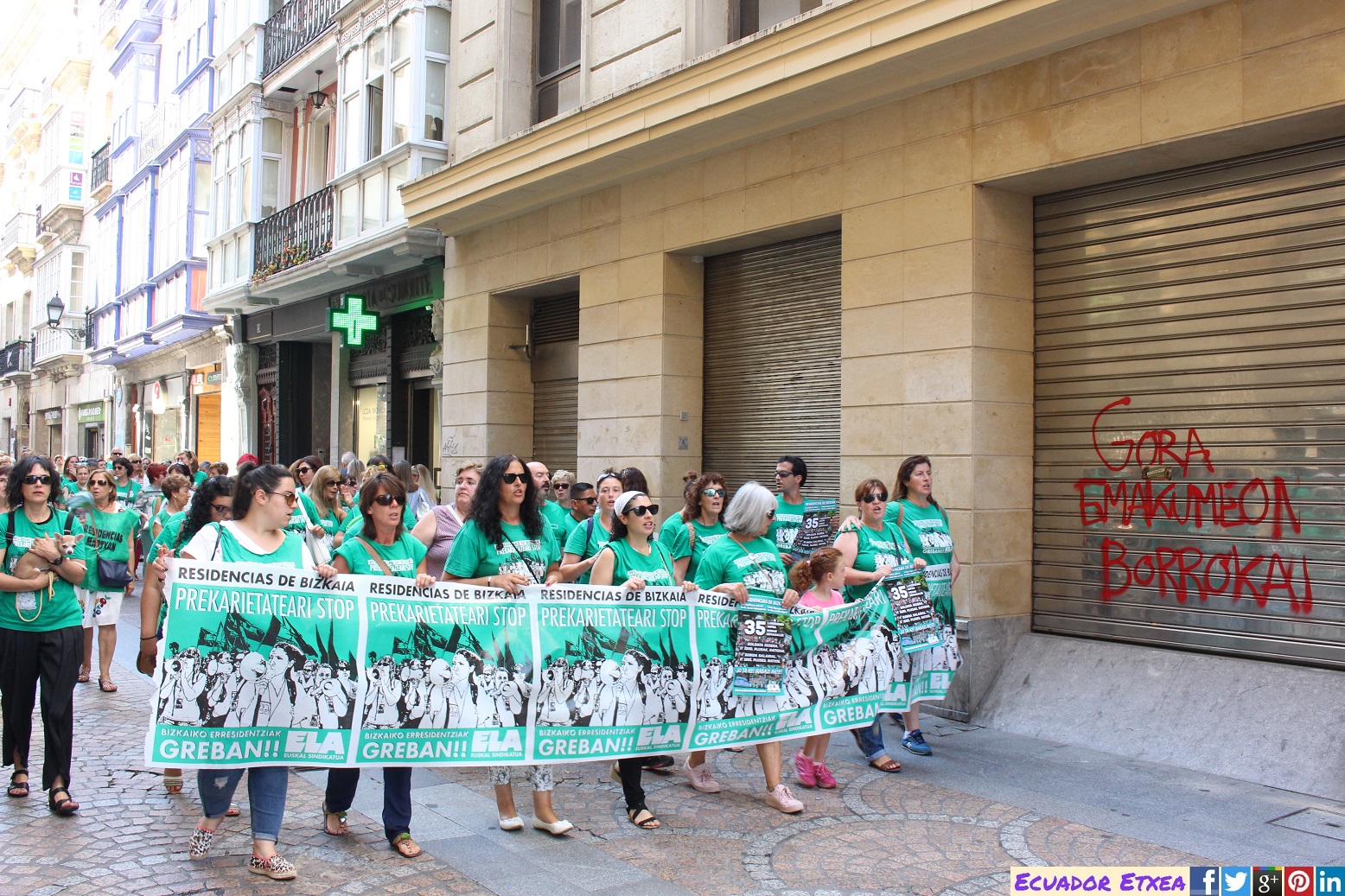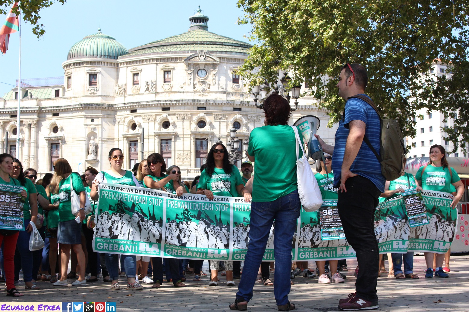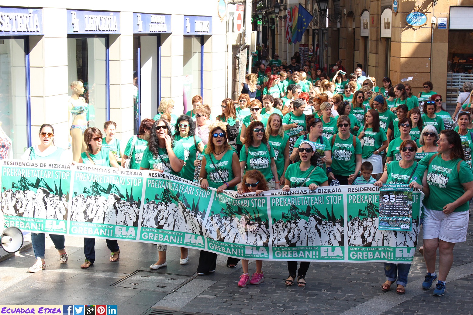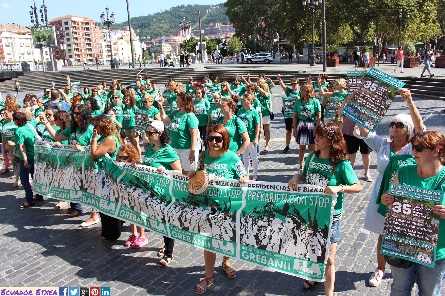 Las Trabajadoras de las Residencias de Bizkaia continúan con la convocatoria de huelga realizada hasta, como mínimo, el 31 de agosto. Dentro de las movilizaciones que acompañan estas jornadas de huelga este miércoles 2 de agosto han realizado una espectacular acción en Bilbao.