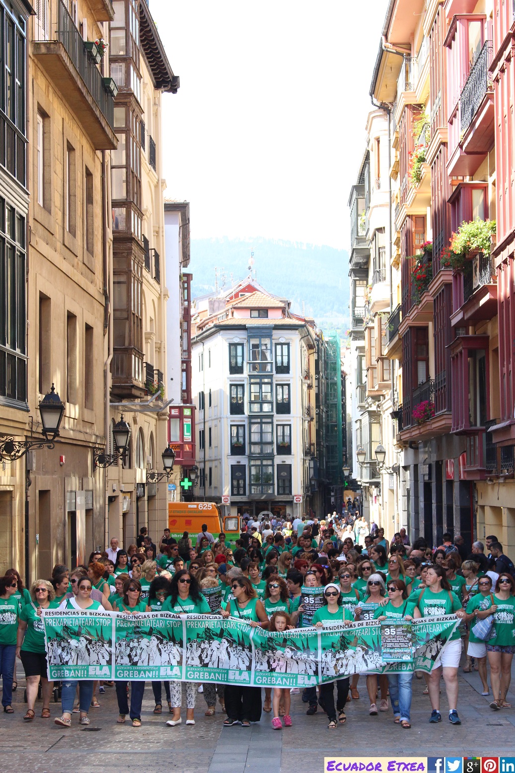 Las huelguistas se han congregado con el apoyo del Sindicato ELA en la Plaza Arriaga y han recorrido el Casco Viejo mezclando el movimiento y la quietud. “Con el movimiento, gritando, bailando y reivindicando hemos querido demostrar nuestra actitud: no vamos a parar hasta dignificar nuestras condiciones laborales. Con la quietud, estando paradas durante largo tiempo, hemos querido visualizar como nos quiere ver la Diputación Foral de Bizkaia: calladas, quietas y sumisas. Pues nada, lo llevan claro: ni nos vamos a callar, ni nos van a parar, ni vamos a ser sumisas”.