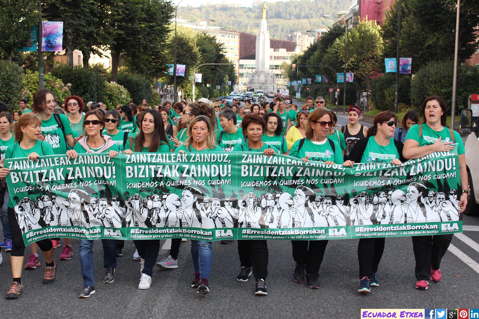 Las trabajadoras de las residencias de Bizkaia hacen un llamamiento a la ciudadanía de Bizkaia a que les acompañen en esta marcha y de una vez por todas se logre la consecución de un convenio sectorial que contenga las 35 horas semanales, más personal, la mejora en la calidad asistencial, salarios de 1.200 euros y la mejora en las cobertura de Its y en los diferentes pluses. (Fuente: ELA Sindikatua)
