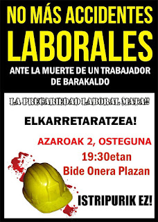 Con esta muerte ya son 50 en Euskal Herria las muertes que se han producido en accidentes laborales. (Fuente: Herrikolore Barakaldo)