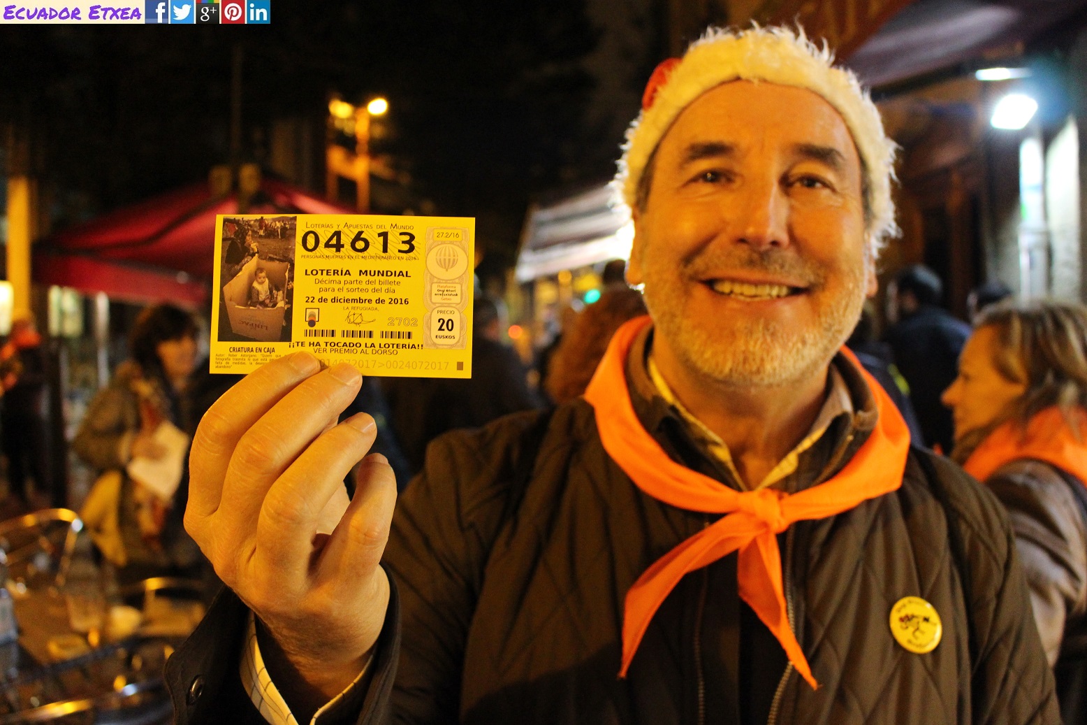 Este es el mensaje que quiere trasladar hoy la plataforma Ongi Etorri Errefuxiatuak-Getxo. A lo largo de la mañana, han levantado el rumor de que la lotería ha tocado en Getxo, vía redes sociales, con el hashtag #loteriagetxo #oee #TeHaTocadoLaLotería y, hacia la mitad de la mañana, han desvelado el ‘secreto’, publicando las papeletas en la que el número premiado, el 4.613, refleja el número de personas muertas en el Mediterráneo en 2016, y la suerte de no tener que vivir como una persona refugiada.